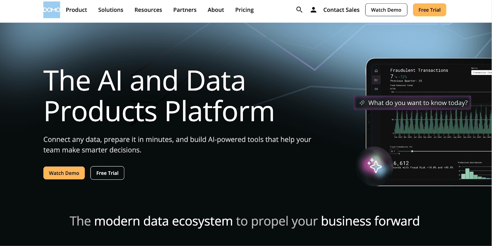 Domo is an all-in-one BI platform that combines data integration, dashboards, and analytics in one place. It is designed for companies that want a complete solution without using multiple tools for different workflows.