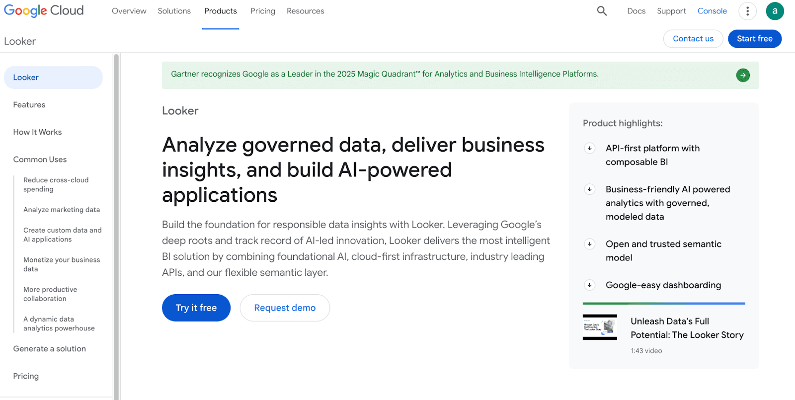 Looker: Reliable for governance and modeling, but requires technical setup (LookML)