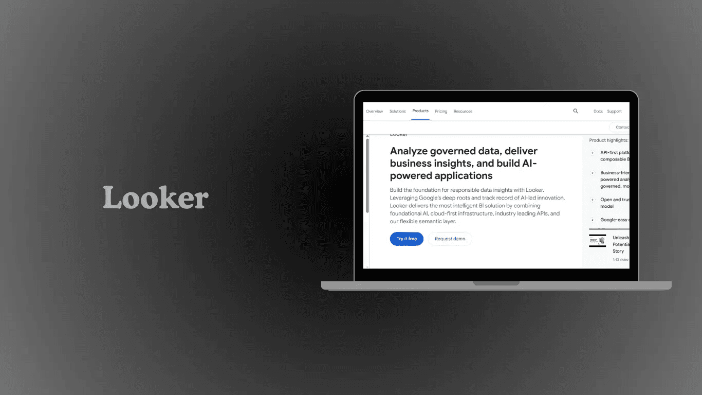 Looker, part of Google Cloud, is a modern BI and analytics platform that helps businesses explore, analyze, and share real-time data at scale. It’s built for organizations that need customizable, embedded analytics with a governed data foundation.